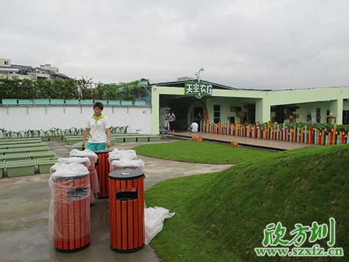 深圳天空農(nóng)莊是中國(guó)首家以有機(jī)農(nóng)業(yè)為主題的兒童體驗(yàn)樂(lè)園,以“給孩子一個(gè)綠色的童年”為核心,以有機(jī)農(nóng)業(yè)為依托,以體驗(yàn)式教育理論為基礎(chǔ),專(zhuān)為3-15歲兒童打造的多功能主題樂(lè)園!天空農(nóng)莊采購(gòu)部為利于環(huán)保,提升環(huán)境形象,創(chuàng)建和諧的自然環(huán)境,特意聯(lián)系我司欣方圳訂購(gòu)了一批鋼木垃圾桶。