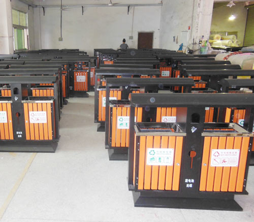 2.鋼木垃圾桶工藝:鋼木果皮箱在完成鋼材支架和實木貼裝過后,還會采用先進噴塑技術(shù),對表面進行防腐處理,同時還要經(jīng)歷耐高溫測試,進一步提升鋼木果皮箱的品質(zhì).