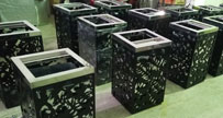 金屬鏤空圖案戶外垃圾桶采用CAD設計制作出鏤空圖案導入到激光切割機,切割而成的外桶的圖案,可根據客戶需求選擇不銹鋼或冷軋鋼材質,不銹鋼材質表面還可做烤漆或...