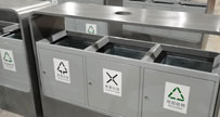 欣方圳廠家生產的不銹鋼六分類垃圾箱整體外觀方形設計,可選擇201#或304#不銹鋼材質制作,由玻璃、金屬、塑料、紙張、電池、燈管專用分類垃圾收集容器六聯式一體組成...