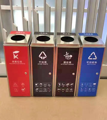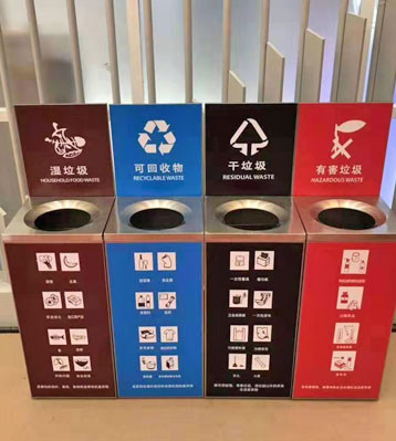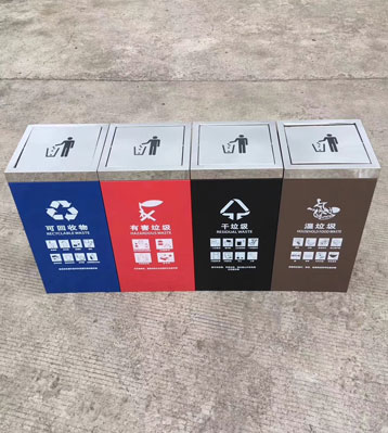 對于全國46個重點城市推進的垃圾分類,大部分實行4分法,即可回收物、其他垃圾、廚余垃圾(餐廚垃圾)、有害垃圾四分法標準。廣西南寧物業積極響應當地政策,從源頭做好垃圾分類工作,找到欣方圳垃圾桶廠家采購這
