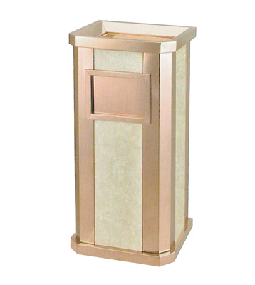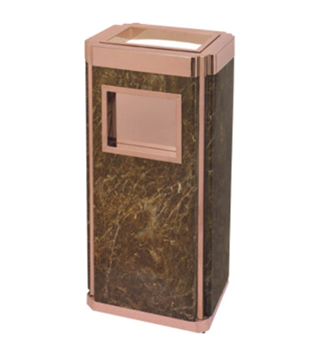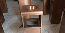 欣方圳為深圳嶺南天潤物業公司提供了一批室內垃圾桶,材質有鈦金類和鐵板噴塑類,外觀精美,使用價值高。 D272皇家座地煙灰桶規格:300*300*685,D295垃圾桶的規格為310*310*740,采用不銹鋼經鍍鈦處理,專業除