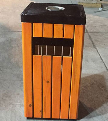 戶外鋼木單桶垃圾桶頂細節圖