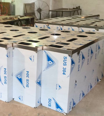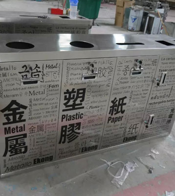 欣方圳不銹鋼五分類環保回收箱批量生產圖