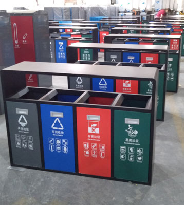 戶外4分類垃圾桶批量生產圖