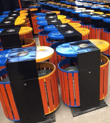 欣方圳戶外橢圓鋼木分類垃圾桶原材料